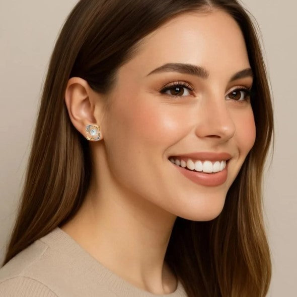 O Brinco Quadrado com Pérola e Zircônias Dourado é a definição de elegância atemporal. Com design clássico e sofisticado, ele combina uma pérola central delicada com zircônias nas laterais, criando um brilho sutil e refinado.